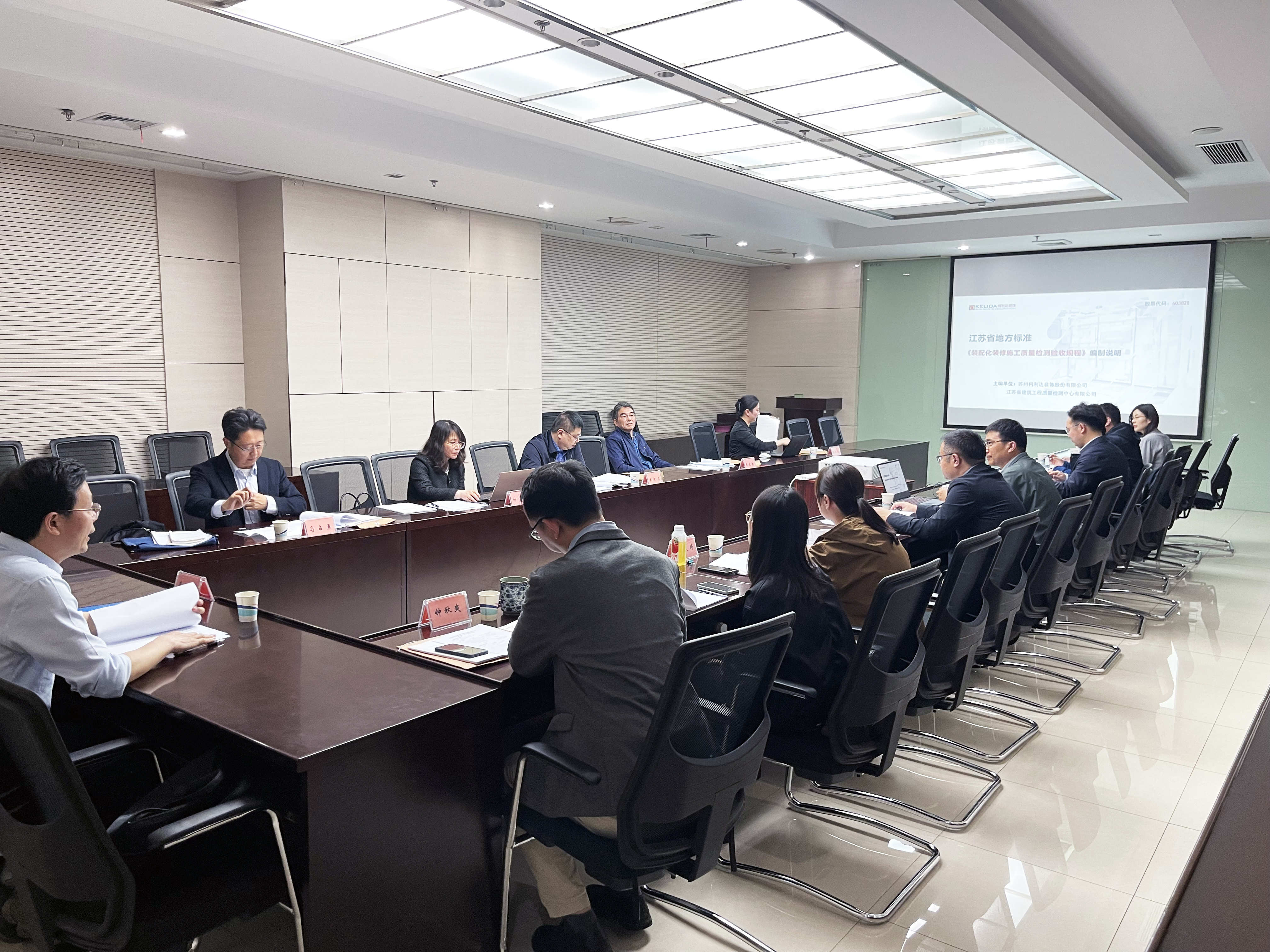 2023年4月21日下午,由蘇州柯利達(dá)裝飾股份有限公司牽頭編制的江蘇省地方標(biāo)準(zhǔn)《裝配化裝修施工質(zhì)量檢測(cè)驗(yàn)收規(guī)程》(以下簡(jiǎn)稱(chēng)《規(guī)程》)送審稿審查會(huì)在南京順利召開(kāi)。省住建廳綠色建筑與科技處韋伯軍二級(jí)調(diào)研員、省工程建設(shè)標(biāo)準(zhǔn)站相關(guān)領(lǐng)導(dǎo)、審查專(zhuān)家及編制組成員出席了本次會(huì)議。